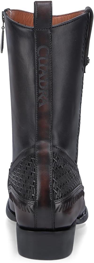 This urban boot for men, crafted from genuine bovine leather, combines the best of fashion and functionality. Featuring sophisticated designs with laser engravings and perforations, as well as unique handcrafted weaving, it reflects the essence of the Cuadra brand. The metallic Cuadra monogram application adds an exclusive touch to every step. Equipped with the latest comfort innovations, this boot includes Ortholite technology, a removable flex insole, and a tube with soft linings that ensure greater flexibility and a perfect fit. The leather sole with TPU anti-slip insert provides security and stability with every move. With details crafted in embroidery and laser engravings, this boot not only enhances your style but also provides maximum comfort thanks to its advanced technologies. Ideal for the modern man seeking versatile, durable footwear with a unique design. Stand out with Cuadra! Care: Do not wet, do not expose to direct light for a long time, it can cause a variation in the tone of the leather, do not rub in laser and fabric applications, do not expose to sharp objects and avoid applying solvents or products not recommended by Cuadra as the leather can be damaged, always use the closing function to facilitate the placement of the boot. Maintenance: Clean with a slightly damp cloth to remove dust, let dry, apply natural cream or cream to the color, let dry and polish with a soft, dry cloth to give shine to the leather, for exotics apply repellent.