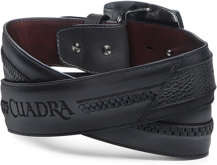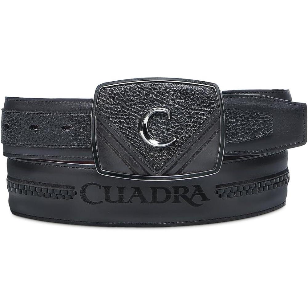 Add a touch of western elegance to your style with this black Cuadra belt. Made with the finest deer and bovine leather, it's soft, durable, and has a flawless finish. Its square buckle with the polished 'C' logo is a detail that makes a difference and catches the eye. The perfect width makes it ideal for your favorite jeans or to complement a more formal outfit. The stitching details and embossed Cuadra name demonstrate its excellent craftsmanship. The woven touches give it a unique and sophisticated air. A versatile accessory that enhances your personality and accompanies you on every adventure. Feel the quality and exceptional design of Cuadra in this belt that will become a staple in your wardrobe.